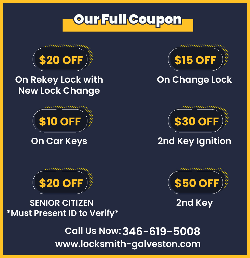 At Locksmith Galveston TX, we provide local residents with dependable residential locksmith solutions. Whether you need locks installed, keys replaced, or security system updates, our residential locksmith staff is dedicated to properly safeguarding your home. Through the application of cutting-edge methods and superior materials, we guarantee that your house will always be a secure sanctuary for you and your family.